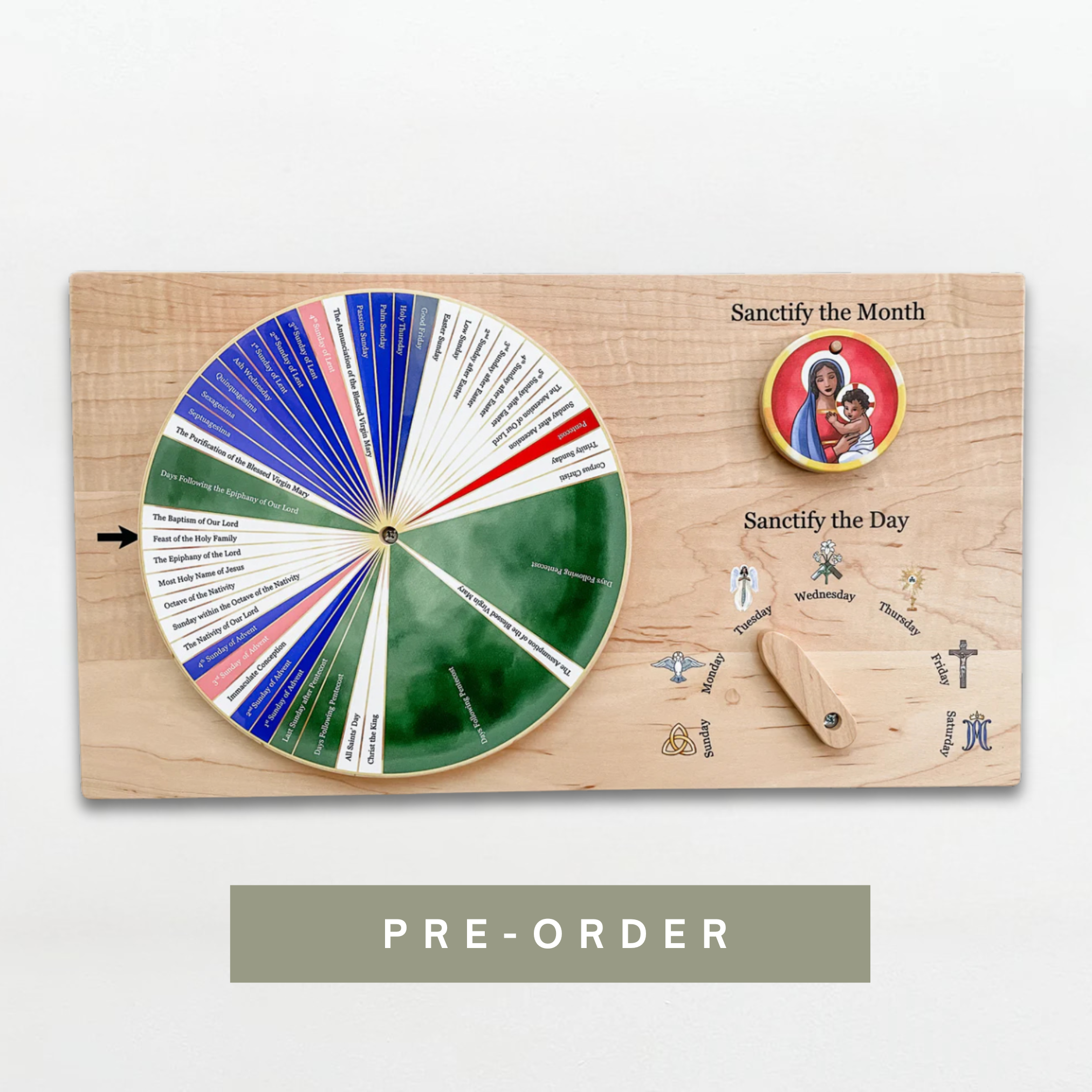 The Liturgical Devotion Calendar Boards are handmade and will be ready to ship mid-October.