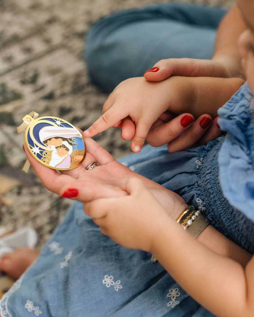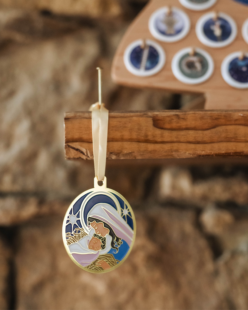 Bring the beauty of faith to your Christmas tree with our Madonna and Child Ornament. Featuring a reverent design that captures Mary’s tender love for the Christ Child, this piece serves as a gentle reminder of the true meaning of Christmas.