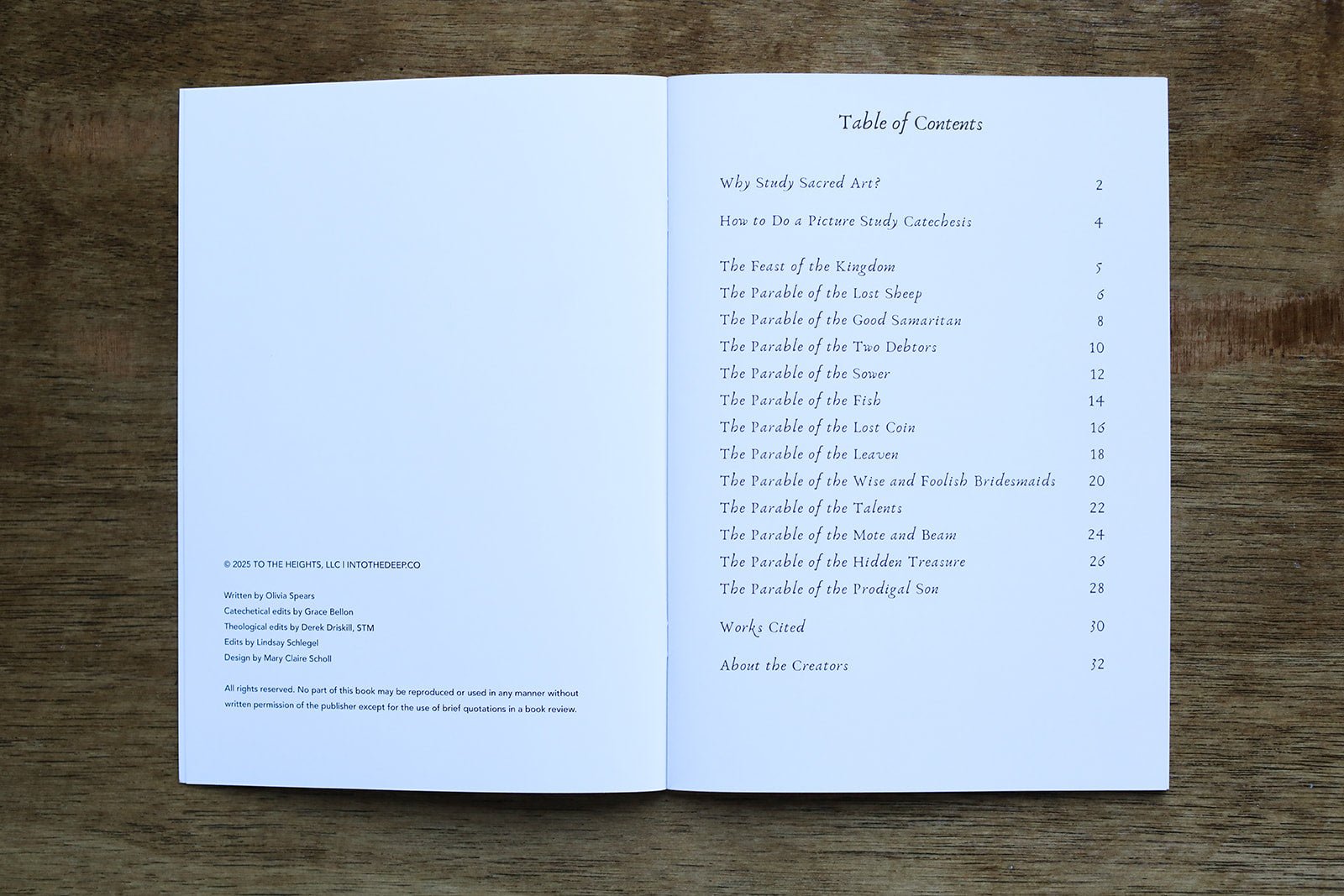 An open-and-go catechesis for each parable, teaching truths about God and His Church from the painting itself.