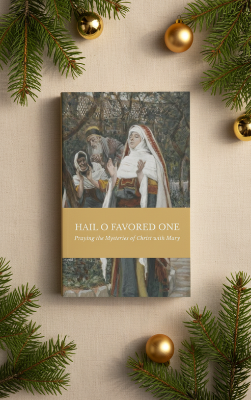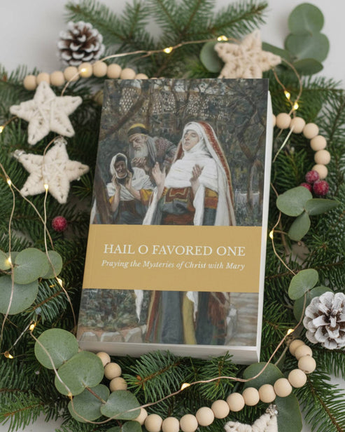 Hail O Favored One: Praying the Mysteries of Christ with Mary is an invitation to let Mary teach you how to ponder the mysteries the way she did. The reflections are deep but accessible, rich without feeling overwhelming, and crafted to draw you into deeper meditation on one of the Church’s most powerful prayers.