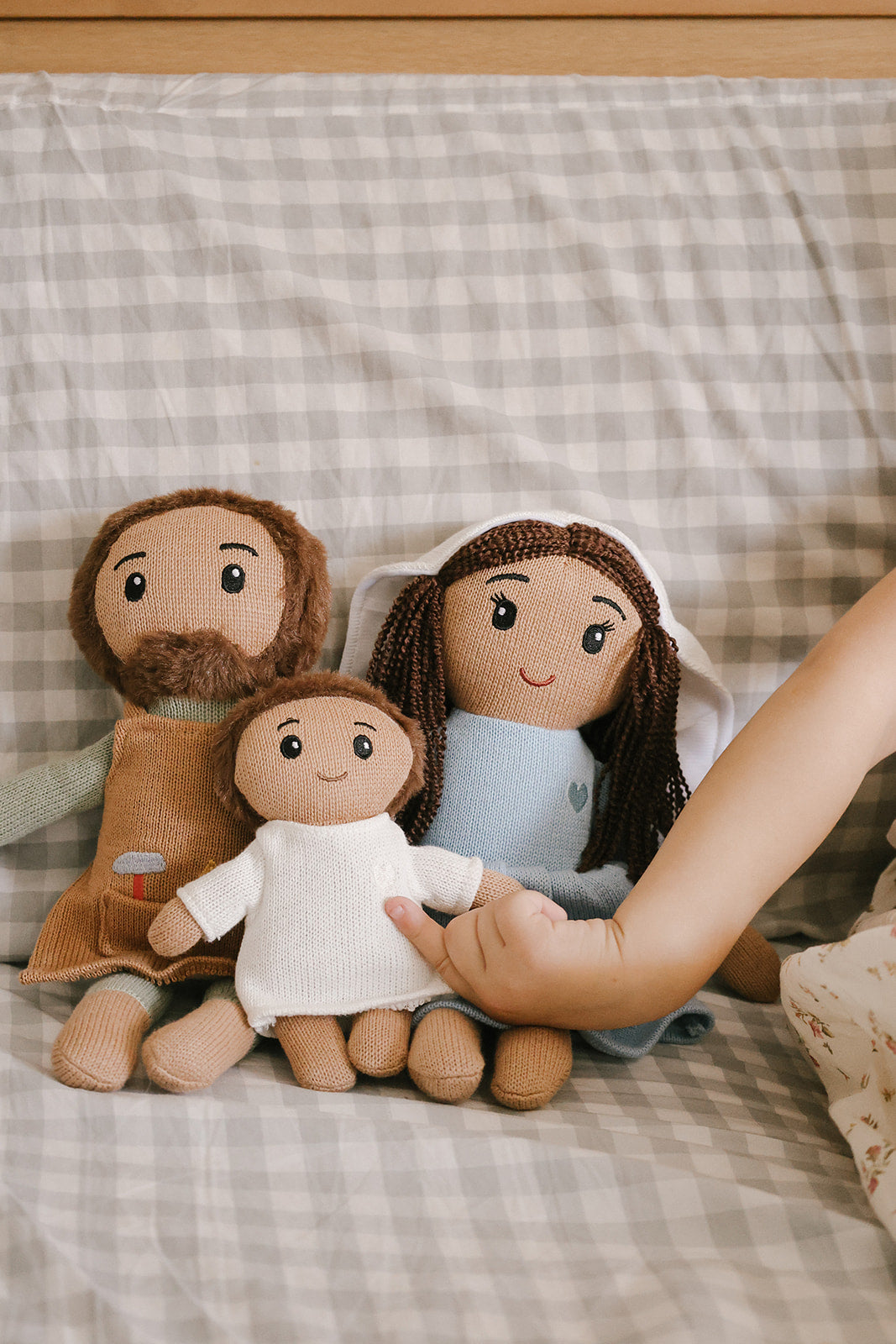 This heirloom-quality set is thoughtfully knit to create a warm, timeless feel—inviting children to hold, play, and grow closer to Jesus, Mary, and Joseph through simple, joyful moments.