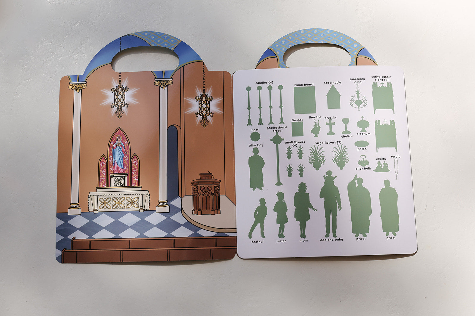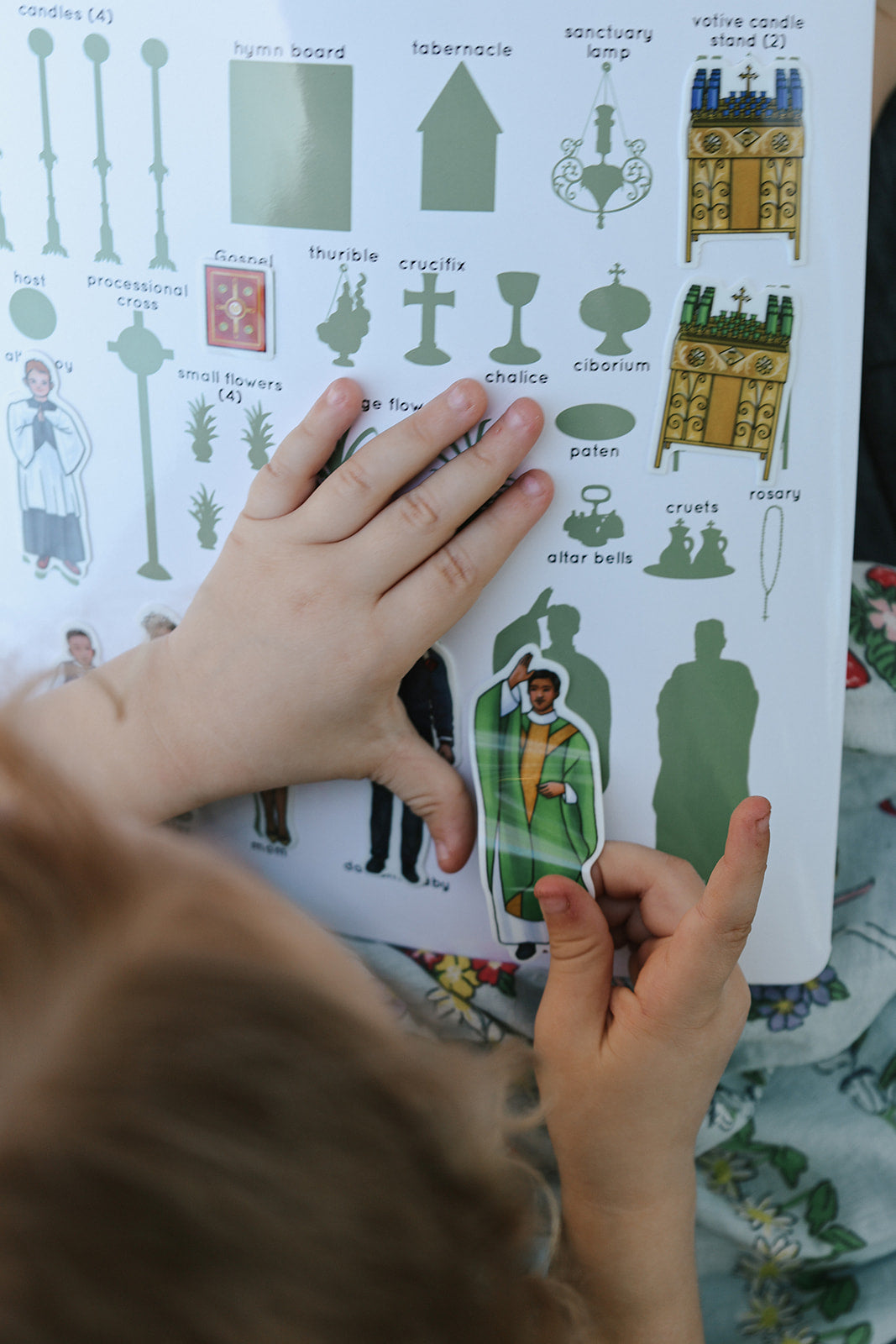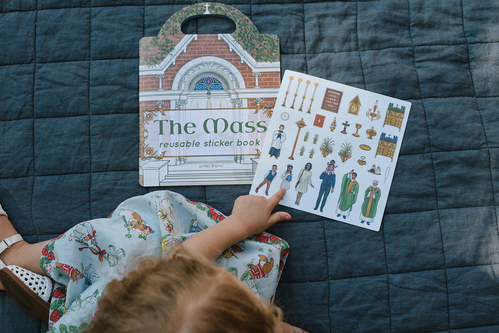The Mass Reusable Sticker Book is a hands-on way for children to follow along with the Holy Sacrifice of the Mass while deepening understanding through play, repetition, and visual learning.